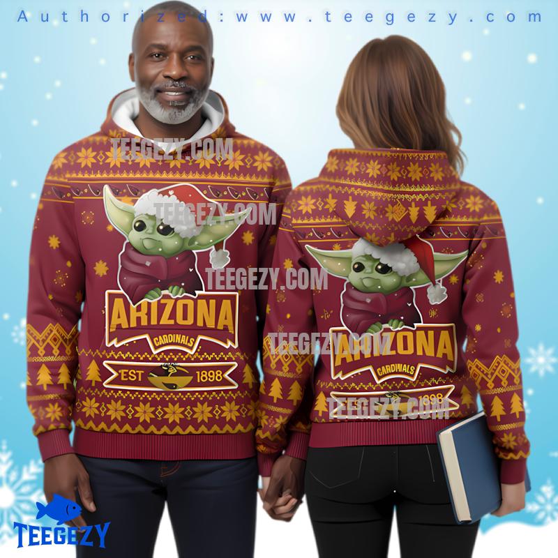 Get ready to embrace your fandom with the Arizona Cardinals Baby Yoda 3D Ugly Hoodie Print. This one-of-a-kind design brings together two iconic symbols of pop culture: the beloved Baby Yoda and the passionate spirit of the Arizona Cardinals. This hoodie is more than just a piece of apparel; it’s a statement of love for your team and the adorable little Jedi.