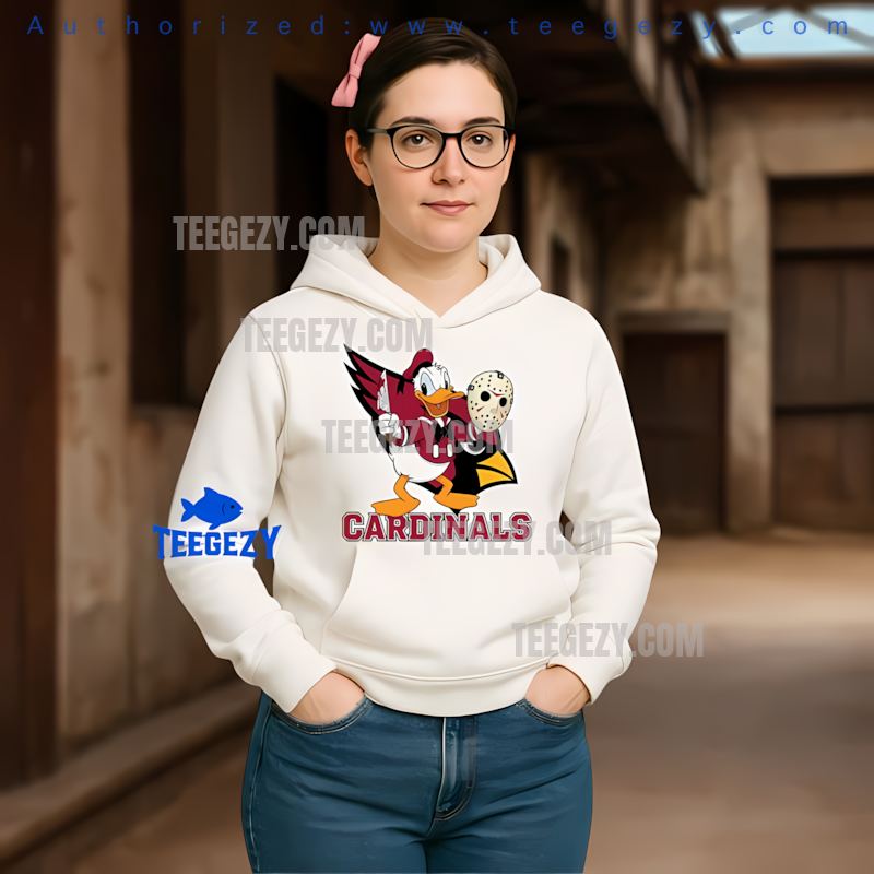 Wearing the Arizona Cardinals Donald Duck Jason Mask Halloween Tee promises an unmatched level of comfort and style. Teegezy ensures that this cotton-made top feels great against your skin, whether you’re at a tailgate or a Halloween party. Its versatility allows you to show off your team spirit while enjoying the festivities, making it essential for any fan’s wardrobe.