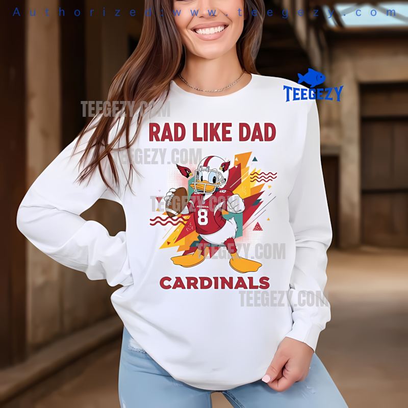 Introducing the Arizona Cardinals Donald Duck Rad Like Dad Shirt, a playful celebration of fandom and family fun. This design blends the spirit of the Arizona Cardinals with the charm of a beloved character, embodying the joy of cheering your team on while showcasing your unique style. This is not just a shirt; it’s an experience that fans will treasure.