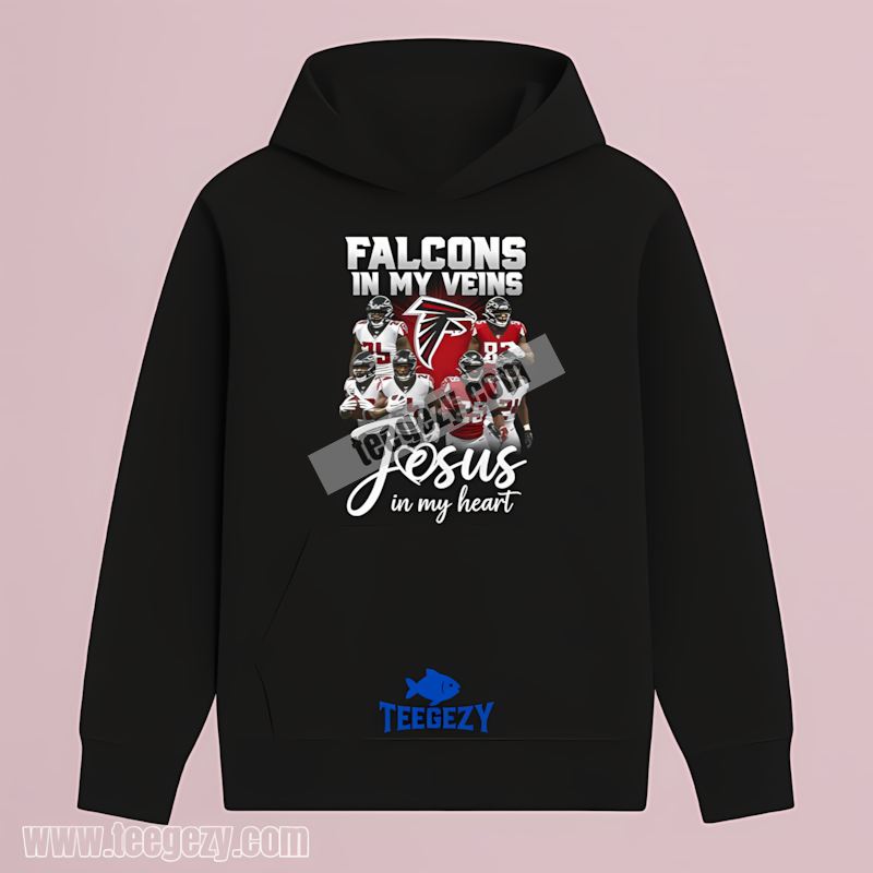 Show your unwavering dedication to both your faith and your favorite team with the Atlanta Falcons In My Veins Jesus In My Heart Shirt from Teegezy. This unique design was born from the countless stories of fans who seamlessly blend their love for the Atlanta Falcons with their deep-rooted Christian faith. Remember those nail-biting playoff games, the unwavering loyalty through thick and thin? This shirt embodies that same unwavering spirit, a testament to a faith that fuels passion for the gridiron.