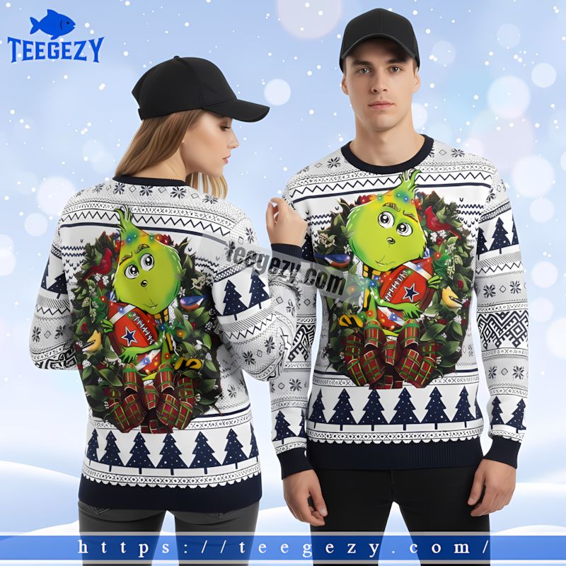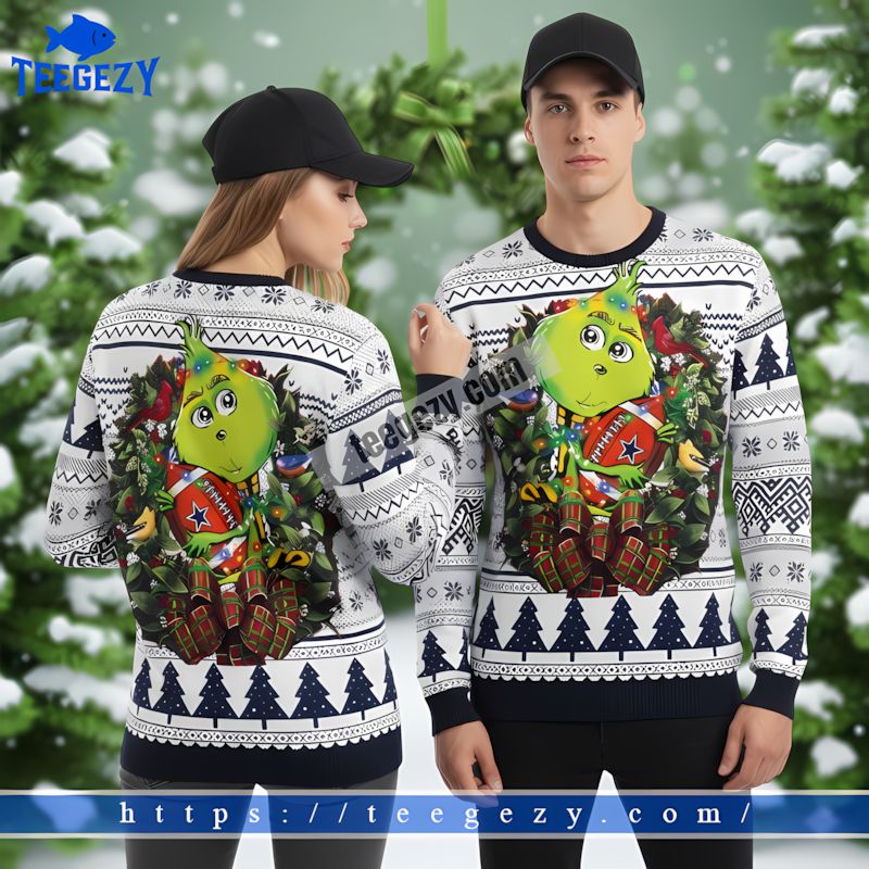 Get ready for the holiday season with the delightful Baby Grinch Hug Dallas Cowboys Ball Family Christmas Ugly Sweater White. This charming design captures the spirit of fun and togetherness, making it a perfect choice for family gatherings or festive celebrations. Wear this cozy sweater to show off your love for both the Grinch and the Dallas Cowboys while spreading joy.