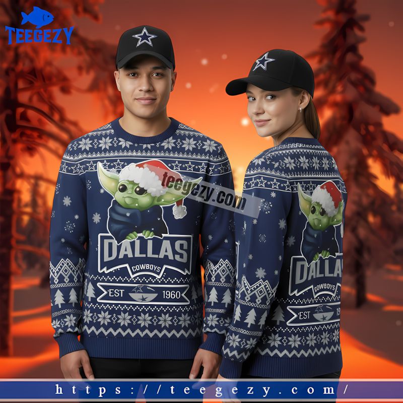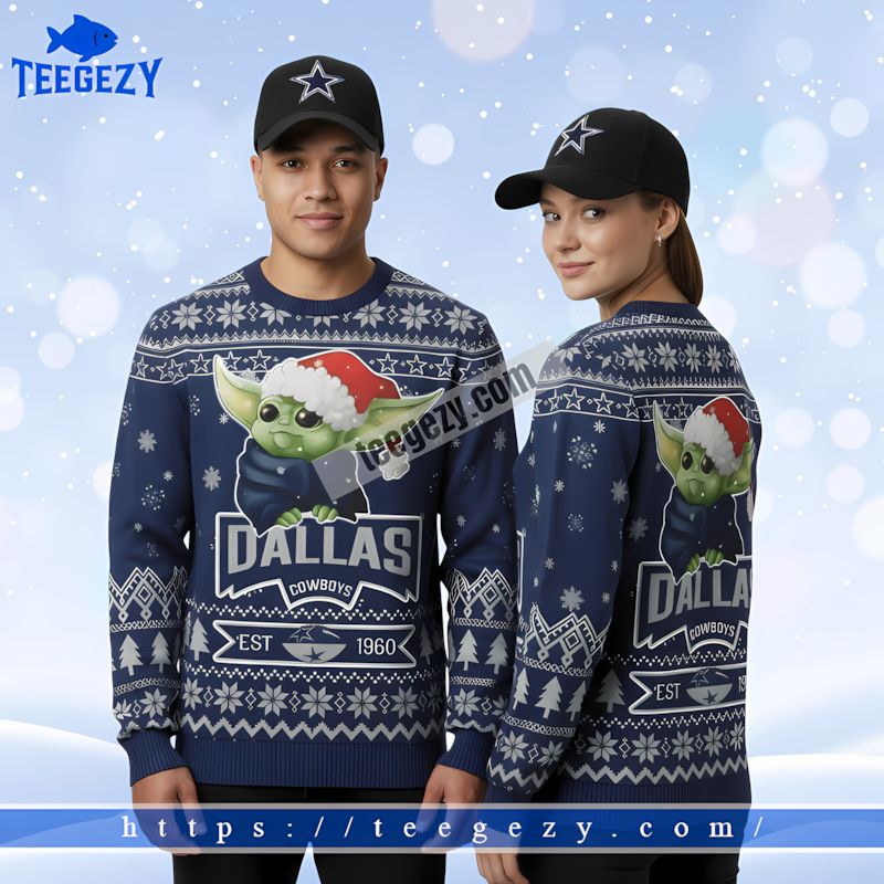 Don’t miss out on this unique blend of fandom and festivity. This sweater is not only a fantastic gift idea but also a stylish way to embrace the holiday spirit. Grab your Baby Yoda Claus Dallas Cowboys Light Up Christmas Ugly Sweater Blue and show off your holiday cheer all season long!