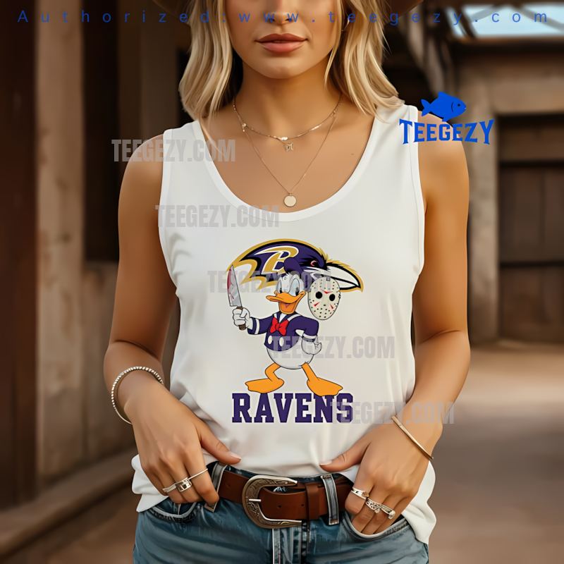 Don’t miss out on adding this must-have to your seasonal wardrobe. Perfect for gifting or treating yourself, the Baltimore Ravens Donald Duck Jason Mask Halloween Shirt promises to elevate your game day attire. Celebrate Halloween and your love for the Ravens with this fantastic Halloween fan shirt today!