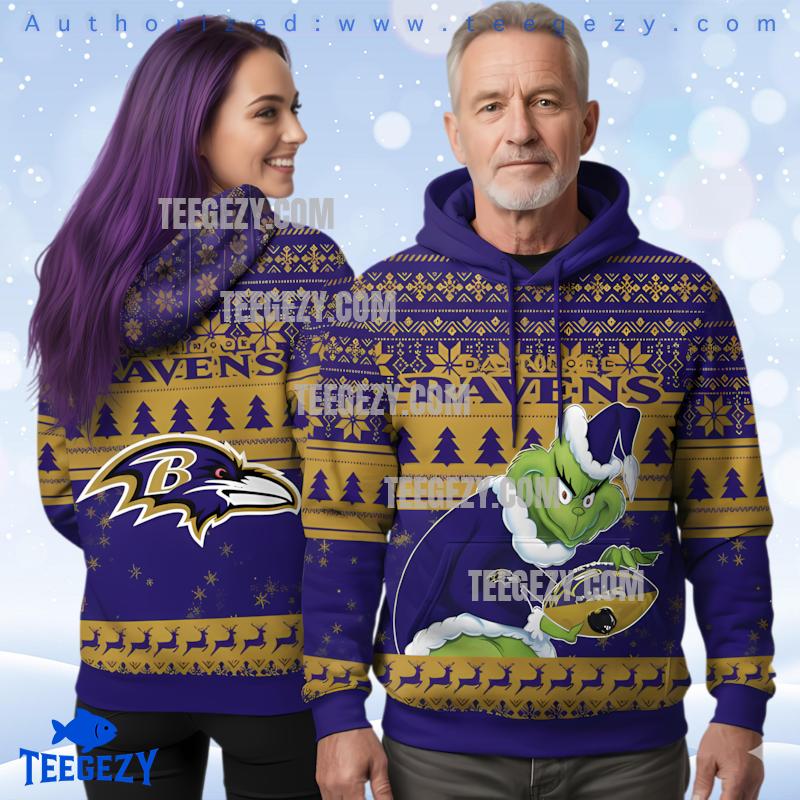 Product information "Baltimore Ravens Grinch Stole Xmas 3D Ugly Hoodie Women"