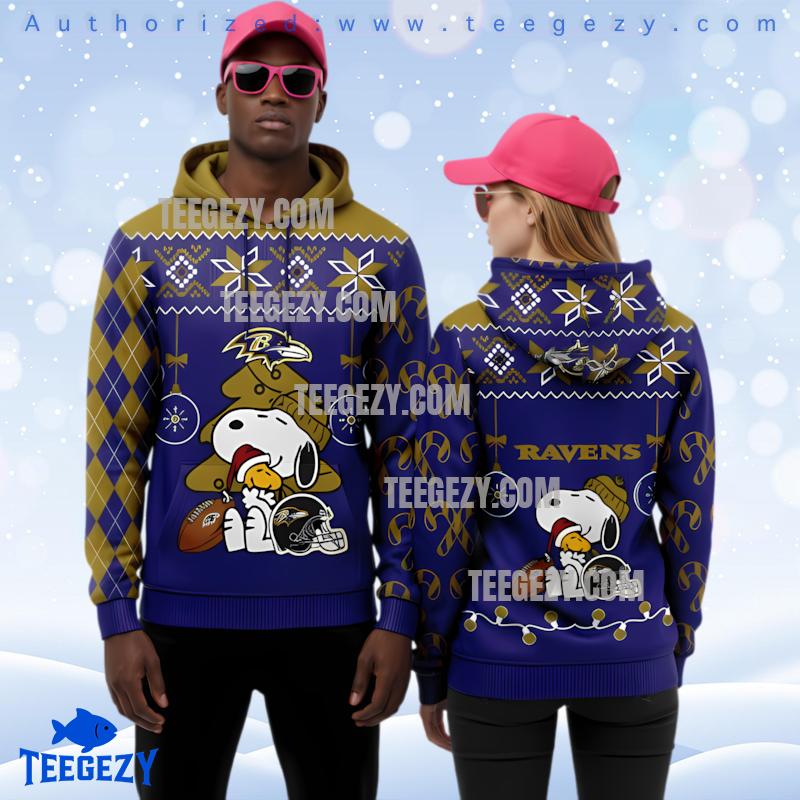 Product information "Baltimore Ravens Snoopy 3D Ugly Pullover Hoodie Xmas Tree"