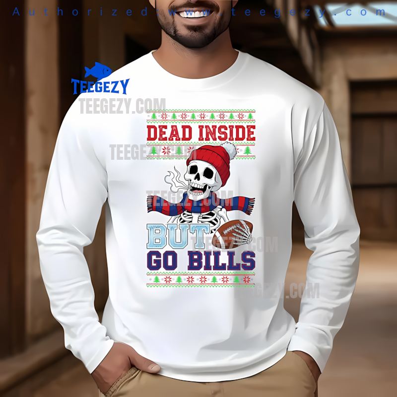 Get ready to showcase your love for the game with the Buffalo Bills Dead Inside But Go Bills Christmas Tee. This unique design captures the spirit of every passionate fan who navigates the ups and downs of the season. Embrace the lighthearted humor with this Buffalo Bills Christmas shirt, perfect for showing off your team pride.