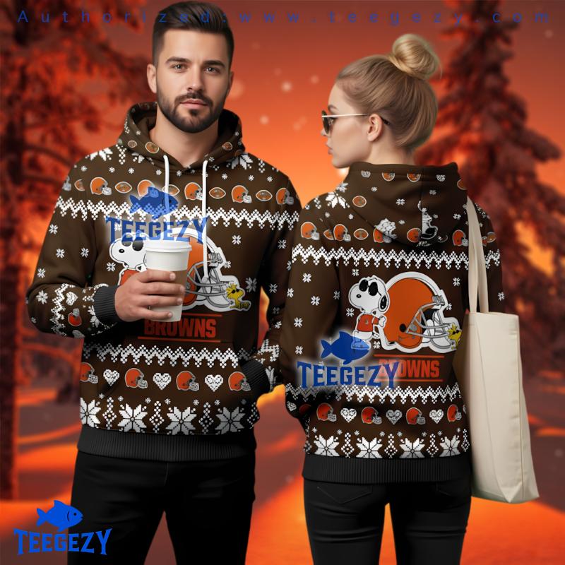 Product information "Cleveland Browns Snoopy Peanuts 3D Christmas Ugly Hoodie"