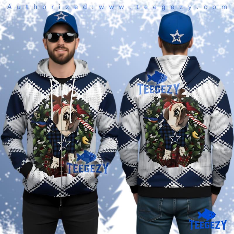 Embrace the holiday spirit with the Dallas Cowboys Pug Dog Reindeer Ugly Christmas 3D Zip Up Hoodie, perfect for showcasing your unique style and team pride. This playful design combines festive cheer with an adorable pug reindeer, making it an essential piece for any fan. Get ready to turn heads and share smiles at your next holiday gathering with this comfy hoodie.