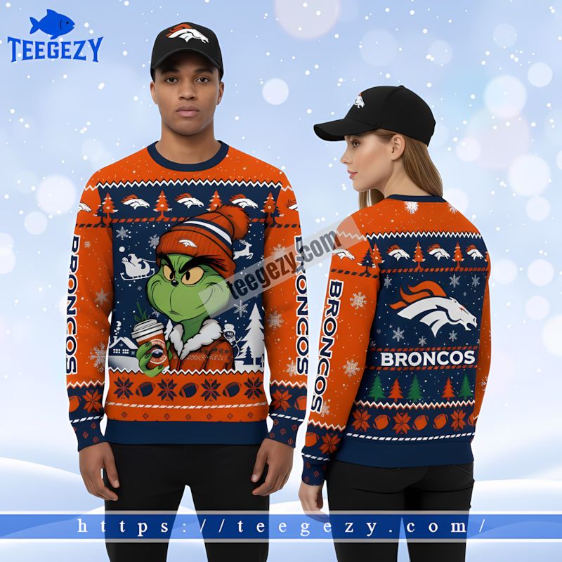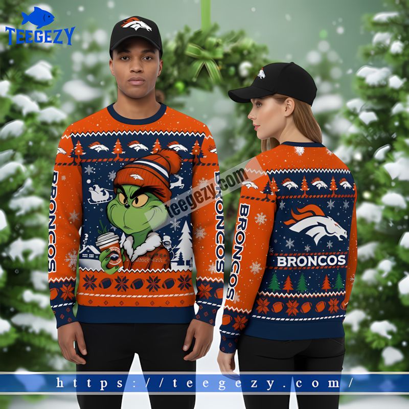 Don’t miss your chance to own this must-have apparel for the season! The Denver Broncos Grinch And Coffee Cup Holiday Ugly Sweater Orange is a wonderful gift for friends or family who love to celebrate in style. Grab yours today and become the life of the holiday party!