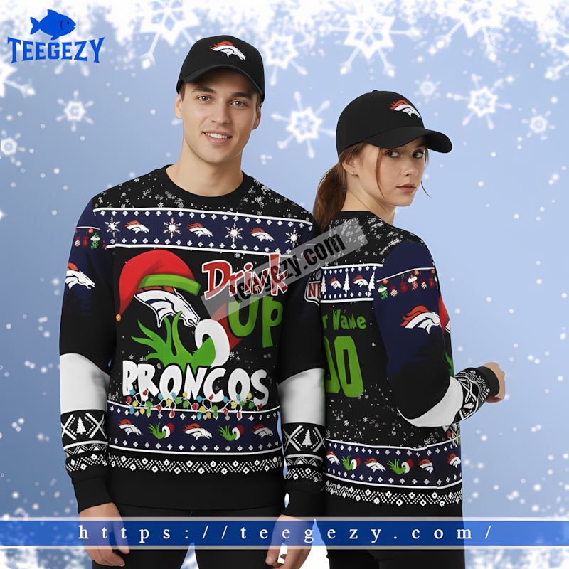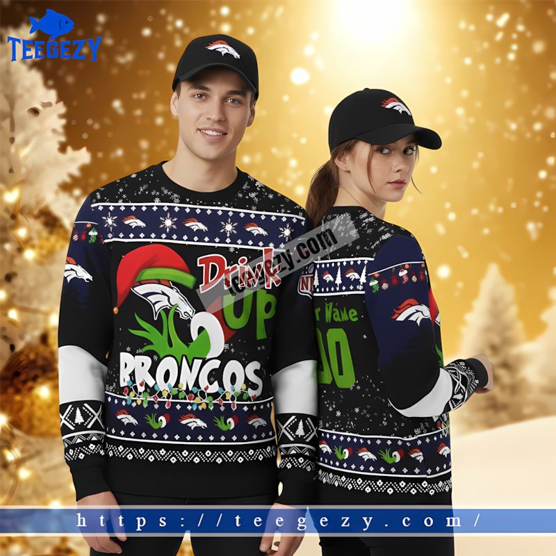 Product information "Denver Broncos Grinch Drink Up Christmas Ugly Sweater Black"