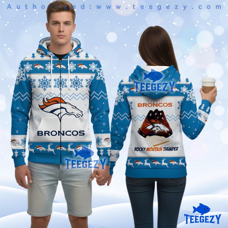 Celebrate the spirit of the season with the Denver Broncos Rocky Mountain Thunder Ugly Christmas 3D Hoodie. This unique apparel captures the joy of holiday gatherings while showcasing your team pride. A perfect blend of festive fun and fandom, it serves as a statement piece for any Broncos supporter eager to spread cheer.