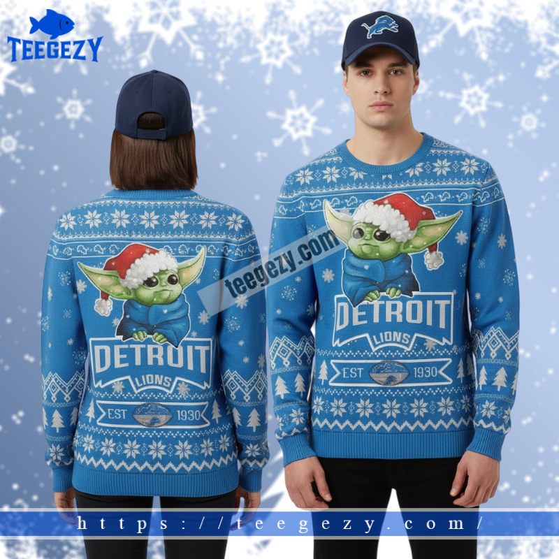 Embrace the festive spirit with the Detroit Lions Baby Yoda Claus Womens Xmas Ugly Sweater Blue! This unique design combines the beloved Baby Yoda with the iconic Detroit Lions, creating a must-have apparel piece that represents holiday cheer and team pride. Whether you’re heading to a party or cozying up at home, this sweater will keep you in the festive mood.