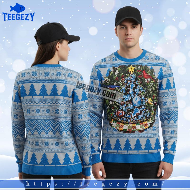 Don’t miss out on this must-have holiday apparel that perfectly combines team spirit and festive cheer. Whether you’re treating yourself or searching for the ideal gift for a loved one, the Detroit Lions Christmas Wreath Tree Logo Womens Ugly Christmas Sweater Blue is the go-to item this season. Grab yours today to celebrate in style!