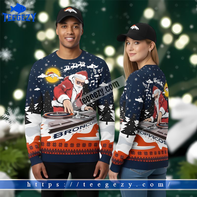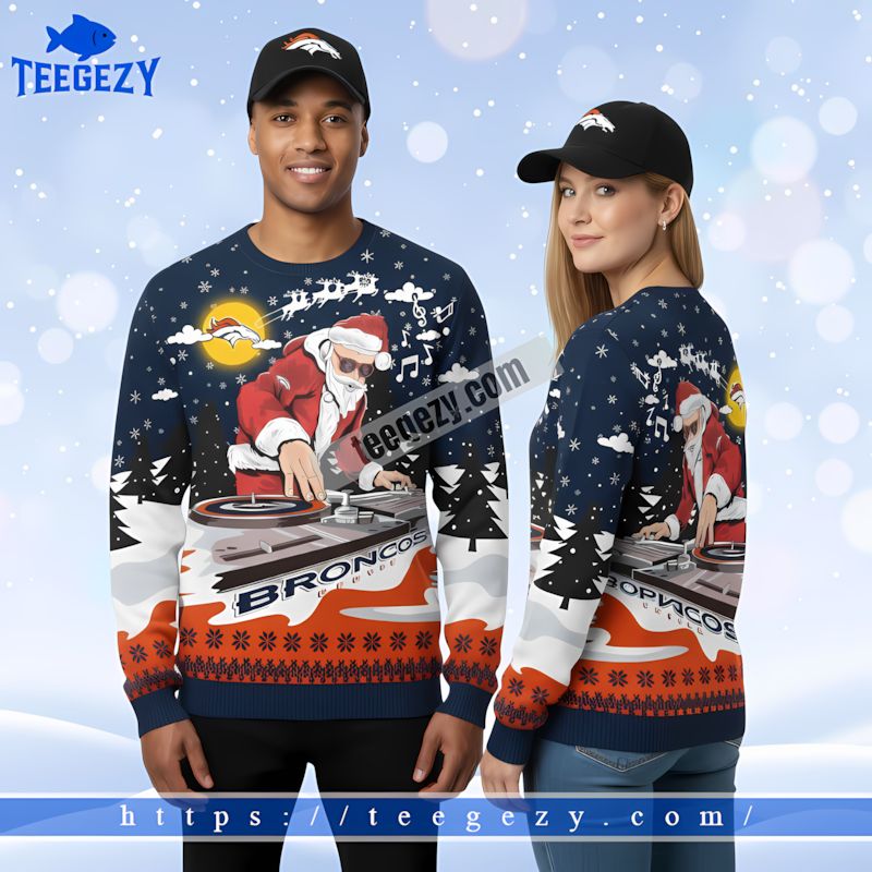 Product information "Dj Santa Claus Denver Broncos Vacation Ugly Sweater Blue Orange"