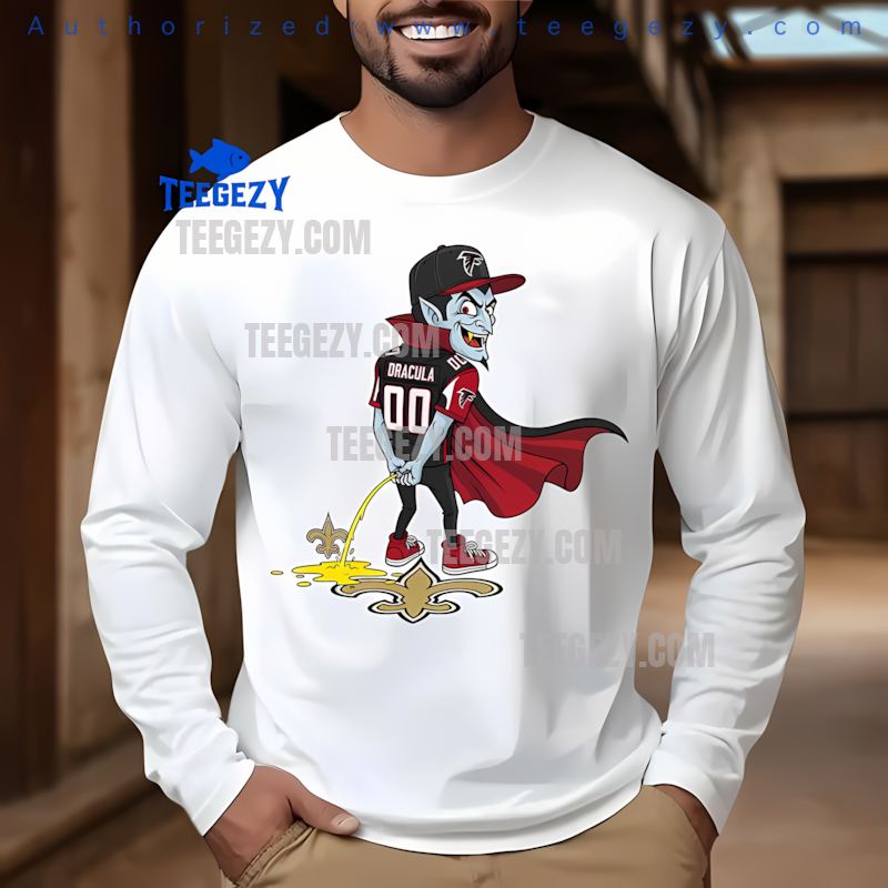 Show your unwavering spirit with the Falcons Dracula Peeing On New Orleans Saints Logo Rivalry Tee! This design captures the fierce rivalry that electrifies the air on game days, making it a statement piece for every die-hard Falcons fan. Elevate your wardrobe with this must-have Rivalry Tee, perfect for showcasing your team pride.