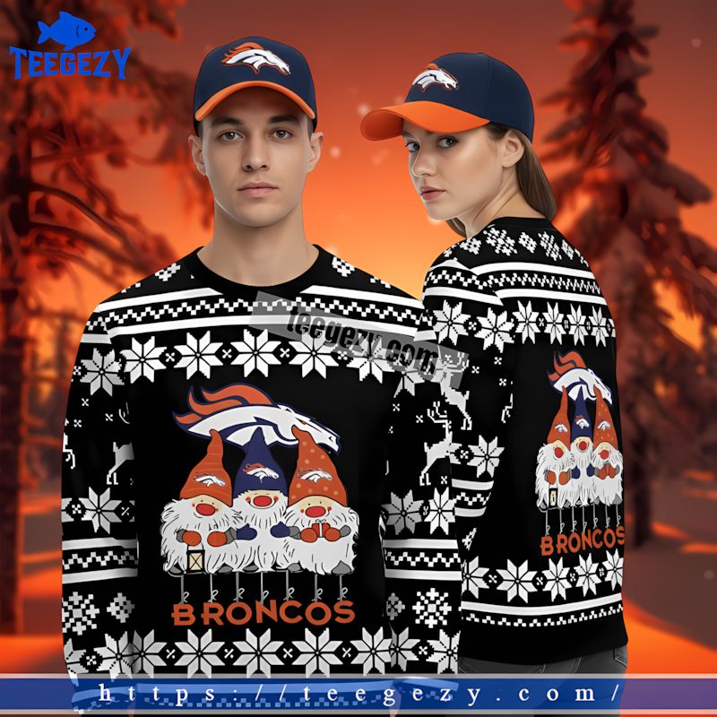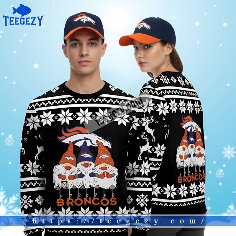 Get ready to celebrate the holiday season with the Gnome Denver Broncos Mens Xmas Ugly Sweater Black. This unique design combines festive fun and your love for the Broncos, making it the perfect addition to your winter wardrobe. Embrace the spirit of the season in style with this standout piece that screams holiday cheer.