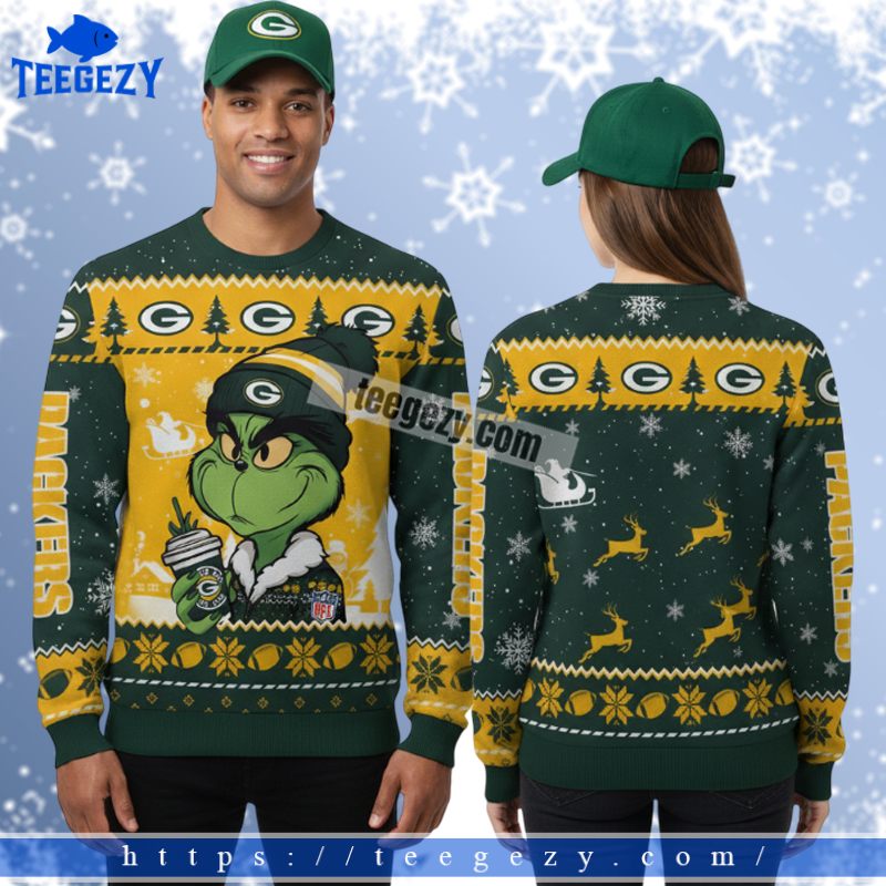 Product information "Green Bay Packers Grinch Coffee Womens Christmas Ugly Sweater Yellow"