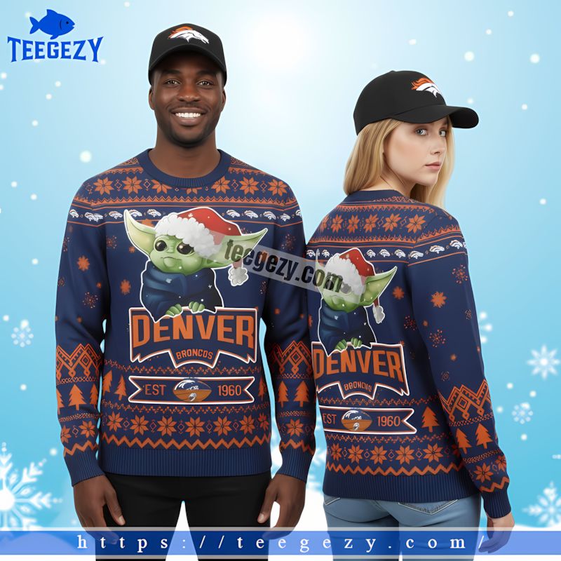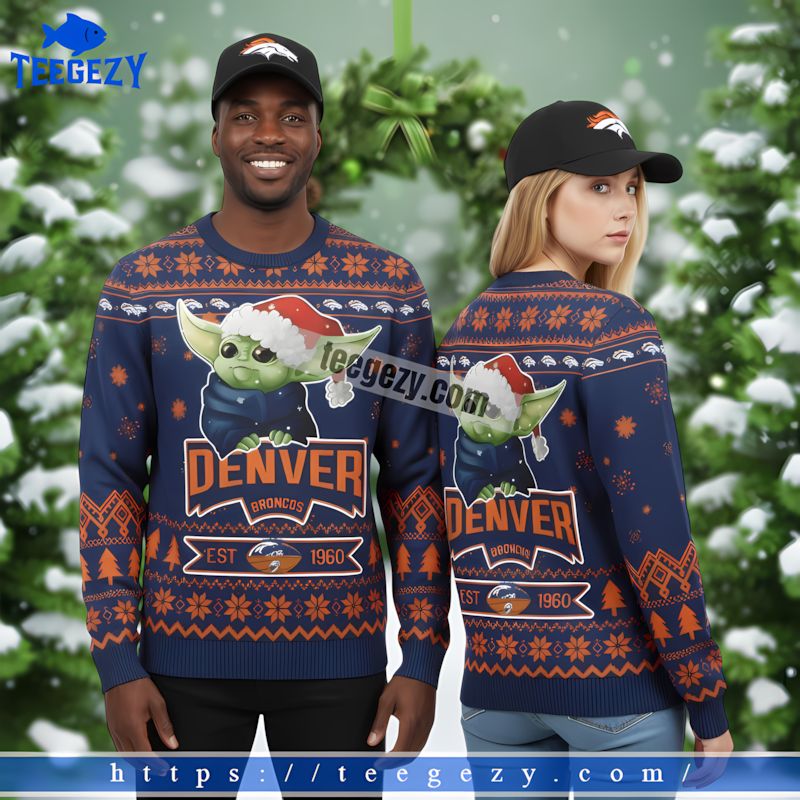 Product information "Grogu Denver Broncos Family Christmas Ugly Sweater Blue Orange"