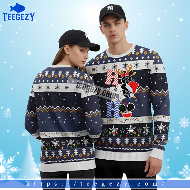 Get ready to spread some holiday cheer with the Ho Ho Ho Mickey Santa Claus Dallas Cowboys mens Xmas ugly sweater blue. This fun and festive design combines the magic of Mickey with the spirited pride of the Dallas Cowboys, making it the perfect apparel for any football fan. Celebrate the season in style with a sweater that brings a smile to everyone around you.
