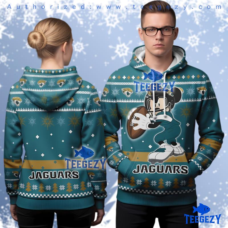 Immerse yourself in the festive spirit with the Jacksonville Jaguars Disney Mickey Mouse Ugly Christmas 3D Hoodie. This unique design blends the vibrant energy of the Jaguars with the whimsical charm of Mickey Mouse, making it a perfect gift for any fan looking to celebrate the season in style. Elevate your holiday wardrobe with a piece that stands out in every gathering.
