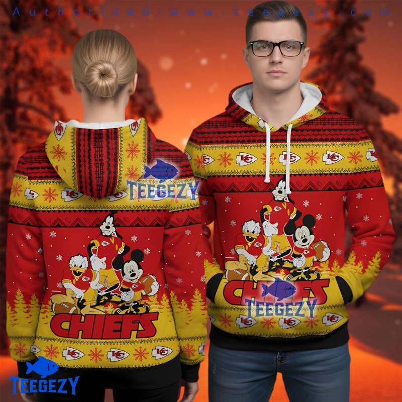 Wrap yourself in holiday spirit with the Kansas City Chiefs Fun Disney Team Ugly Christmas 3D Hoodie. This vibrant piece is designed for the ultimate fan, combining the joy of the season with team pride, perfect for cozy gatherings or festive outings. Embrace the holiday cheer and showcase your love for the game with this standout hoodie.