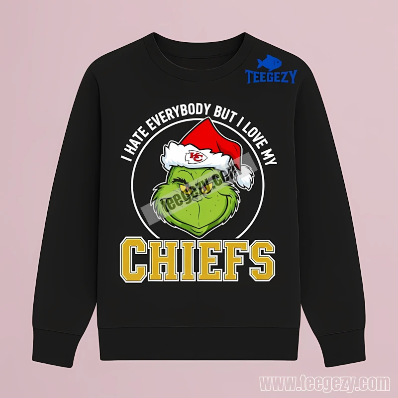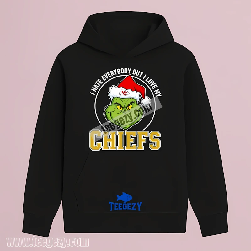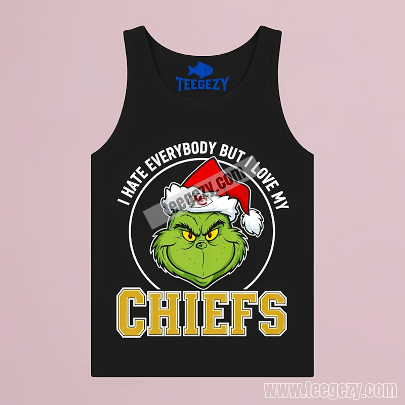 Inspired by the festive spirit of the holidays and the unwavering loyalty of Kansas City Chiefs fans, Teegezy presents the Kansas City Chiefs Grinch I Hate Everybody But I Love My Shirt. This unique design perfectly captures the playful tension between the Grinch’s infamous grumpiness and the undeniable love for the Chiefs. It’s a fun twist on a classic holiday character, reflecting the passionate devotion fans feel for their team.
