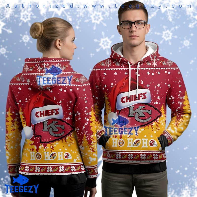 Don’t miss out on this ultimate holiday statement piece! The Kansas City Chiefs Santa Hat Arrowhead Logo Ugly Christmas 3D Hoodie is the perfect gift for any Chiefs fan or a fantastic addition to your own collection. This Chiefs Christmas gear embodies holiday spirit with every wear, making it a must-have this festive season. Get yours today and celebrate in style!