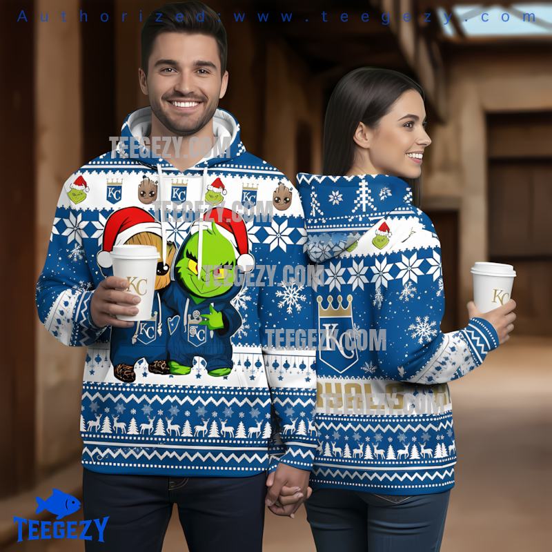 Product information "Kansas City Royals Groot And Grinch Ugly 3D Pullover Hoodie Blue"