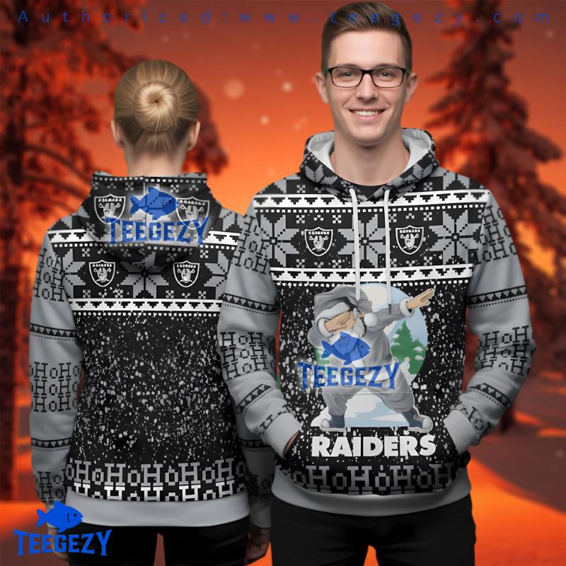 Don’t miss out on this must-have addition to your wardrobe—perfect as a gift for fellow fans or a treat for yourself! Grab the Las Vegas Raiders Dabbing Santa Ho Ho Ho Ugly Christmas 3D Hoodie today and let your team spirit shine this holiday season.