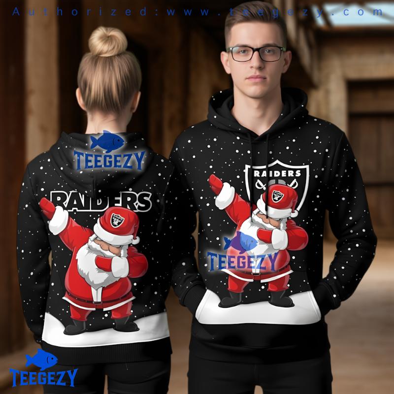 The Las Vegas Raiders Dabbing Santa Ugly Christmas 3D Hoodie Black is the perfect blend of festive cheer and team spirit. This playful design showcases a jolly Santa dabbing, embodying the fun side of the holiday season while proudly representing Raider Nation. With this hoodie, everyone will notice your love for the Las Vegas Raiders during Christmas gatherings.