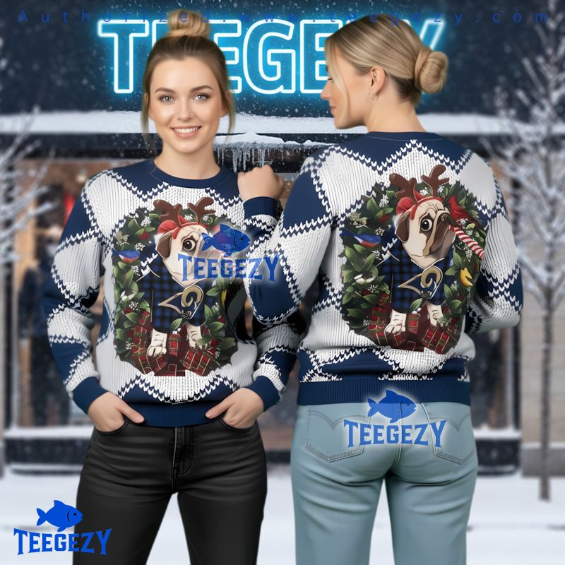 Product information "Los Angeles Rams Pug Dog Ugly Christmas Sweater All Over Print Holiday"
