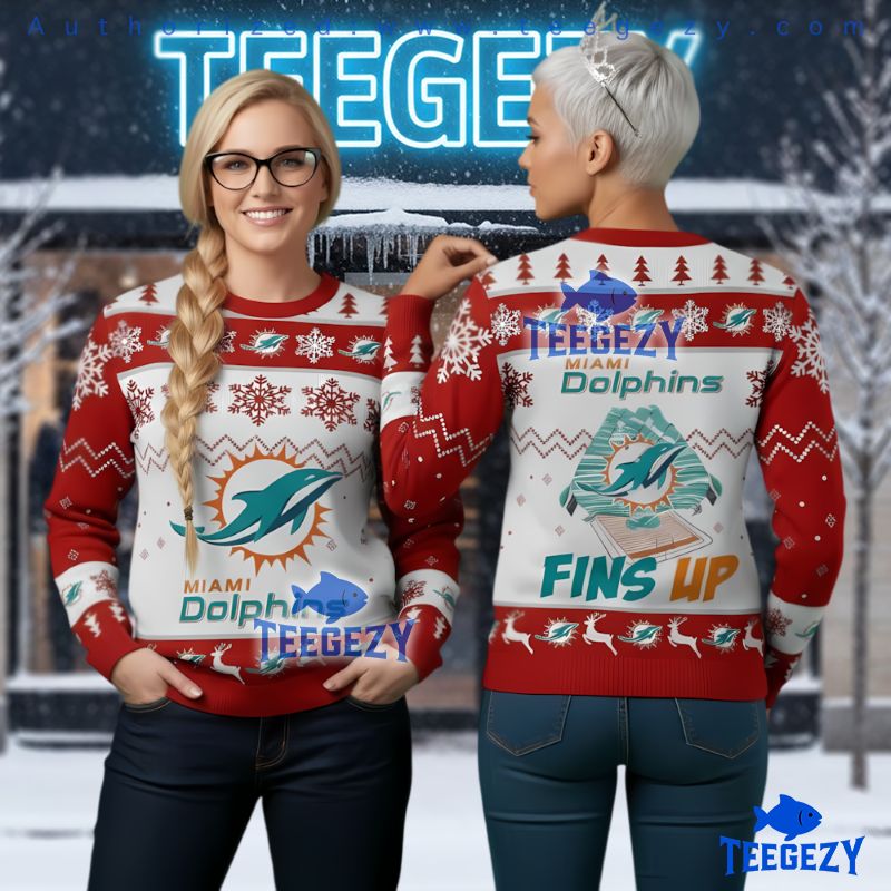 Elevate your holiday festivities with this must-have piece that makes a fantastic gift for any Dolphins supporter. Don’t miss out on owning the Miami Dolphins Fins Up Ugly Christmas Sweater Red White Holiday—it’s not just a sweater; it’s a celebration of your team spirit!