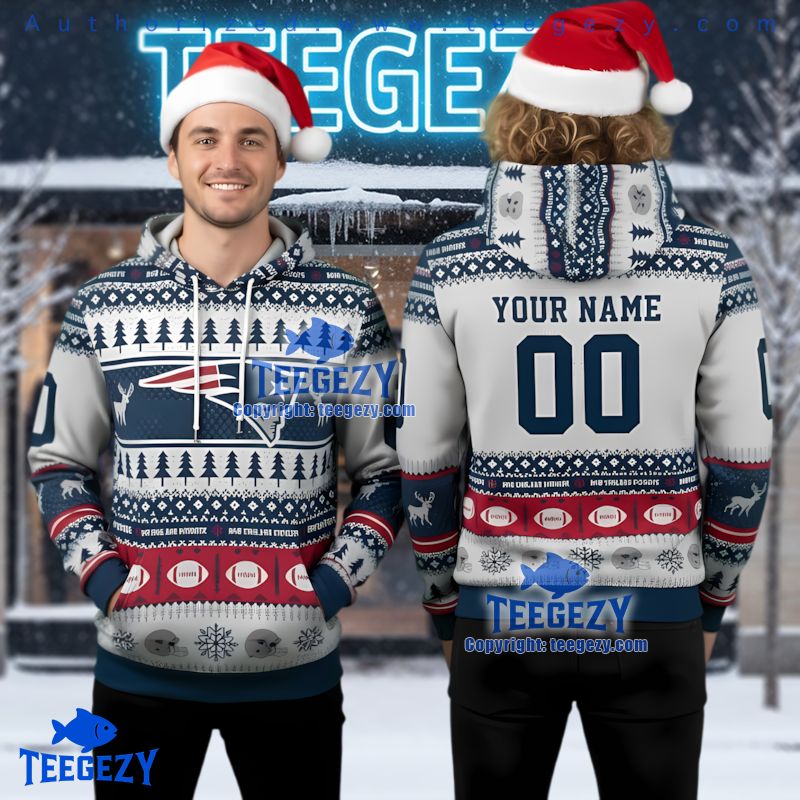 Elevate your holiday spirit with the New England Patriots Ugly Christmas 3D Hoodie Custom White Blue Design. This unique piece combines festive flair with team pride, making it the perfect standout apparel for any Patriots fan looking to make a statement during the holiday season. Get ready to spread cheer in style with this incredible local fan favorite.