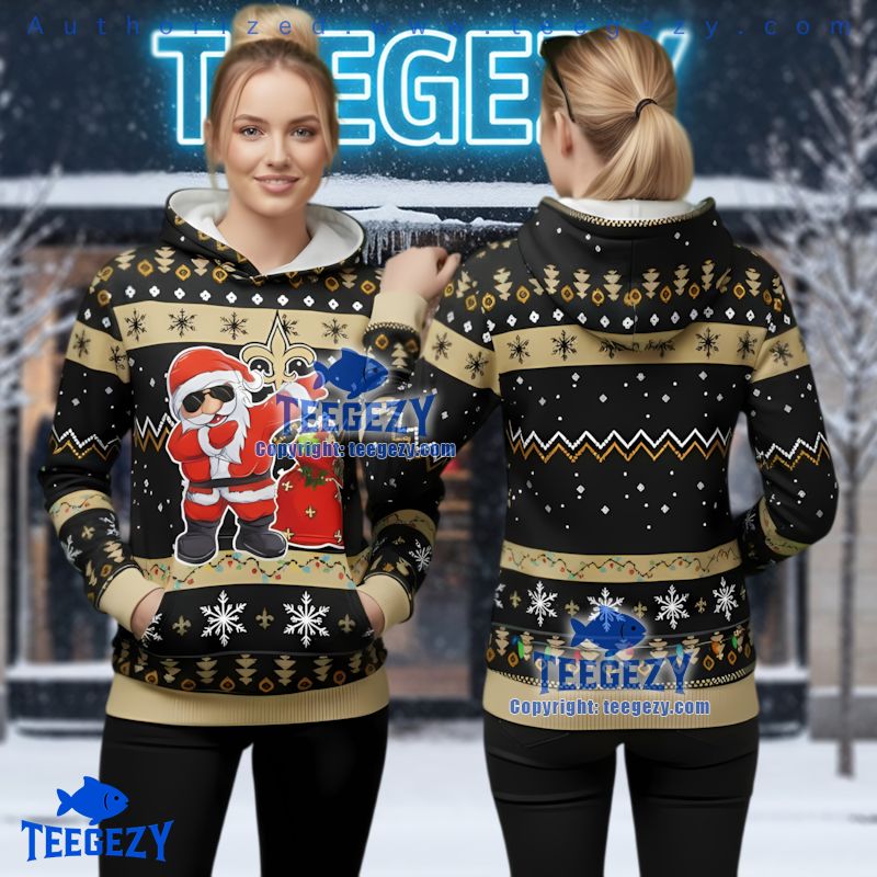 Embrace the holiday spirit with the New Orleans Saints Dabbing Santa Ugly Christmas 3D Hoodie. This unique design combines the festive charm of Santa with the spirited energy of Saints fandom, making it the perfect choice for game days or cozy nights in. The fun and festive vibe of this New Orleans Saints Christmas hoodie will definitely turn heads.