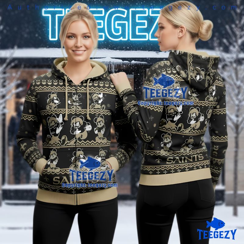 Wrap yourself in holiday cheer and team spirit with the New Orleans Saints Disney Mickey Ugly Christmas 3D Hoodie. This festive hoodie blends the magic of Disney, the excitement of the NFL, and the fun of an ugly Christmas sweater into one unique garment. Show off your love for the Saints in a playful and eye-catching way with this must-have apparel.