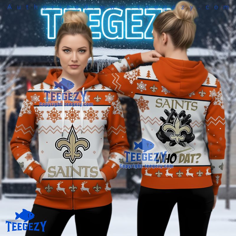 Make this holiday season unforgettable by gifting the New Orleans Saints Festive Orange White Ugly Christmas Hoodie to yourself or a fellow fan. It’s not just a piece of clothing; it’s an essential part of your holiday celebrations. Embrace tradition and showcase your love with this ugly Christmas hoodie that is sure to become a favorite in any fan’s collection.