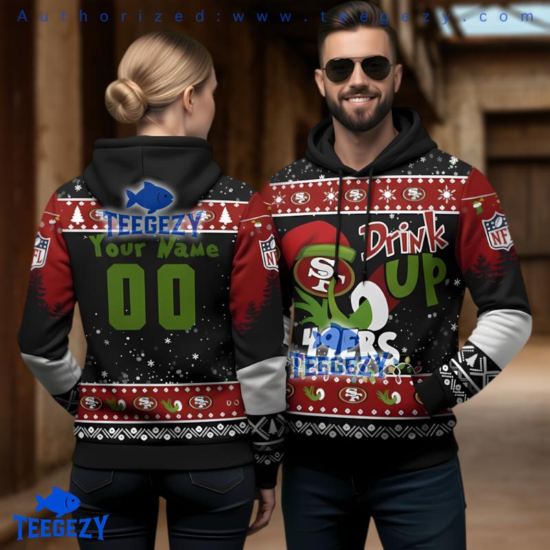 Don’t miss out on this playful and festive apparel piece—the Personalized 49Ers Grinch Drink Up Christmas Ugly 3D Hoodie Fan Gear makes for an ideal gift for any sports enthusiast. Celebrate the holiday season in style and show off your fandom with this one-of-a-kind hoodie that everyone will love.