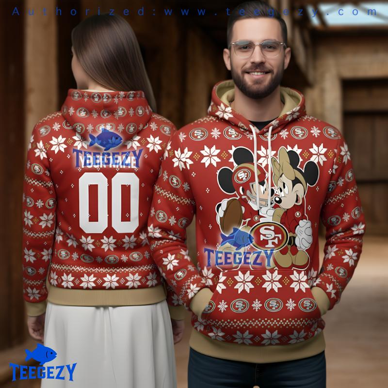Wearing this Personalized 49Ers Minnie And Mickey Mouse 3D Christmas Hoodie means comfort on chilly days. Made from soft polyester, it guarantees warmth without compromising on style. The relaxed fit makes it an excellent choice for layering or wearing solo, perfect for any festive occasion. Teegezy ensures each piece is designed with wearability in mind, so you can enjoy both comfort and character.