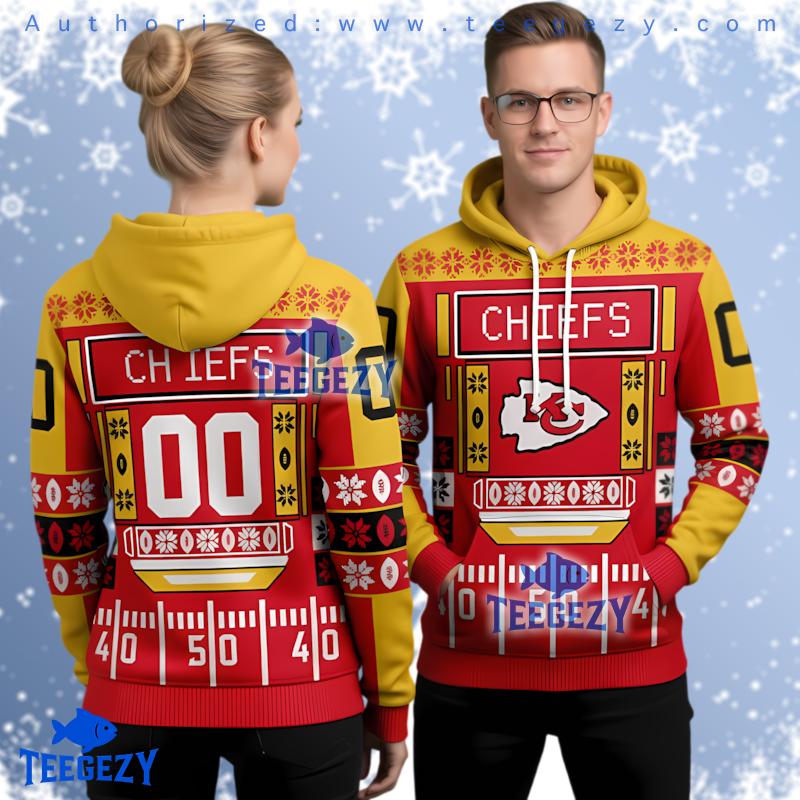 Ultimately, the 3D hoodie is the must-have apparel for any Chiefs fan this holiday season. Don’t miss out on an incredible gift opportunity for yourself or a fellow supporter! Get ready for the holidays with the Personalized Chiefs Fan Ugly Christmas 3D Hoodie Gameday Gift and celebrate in style.