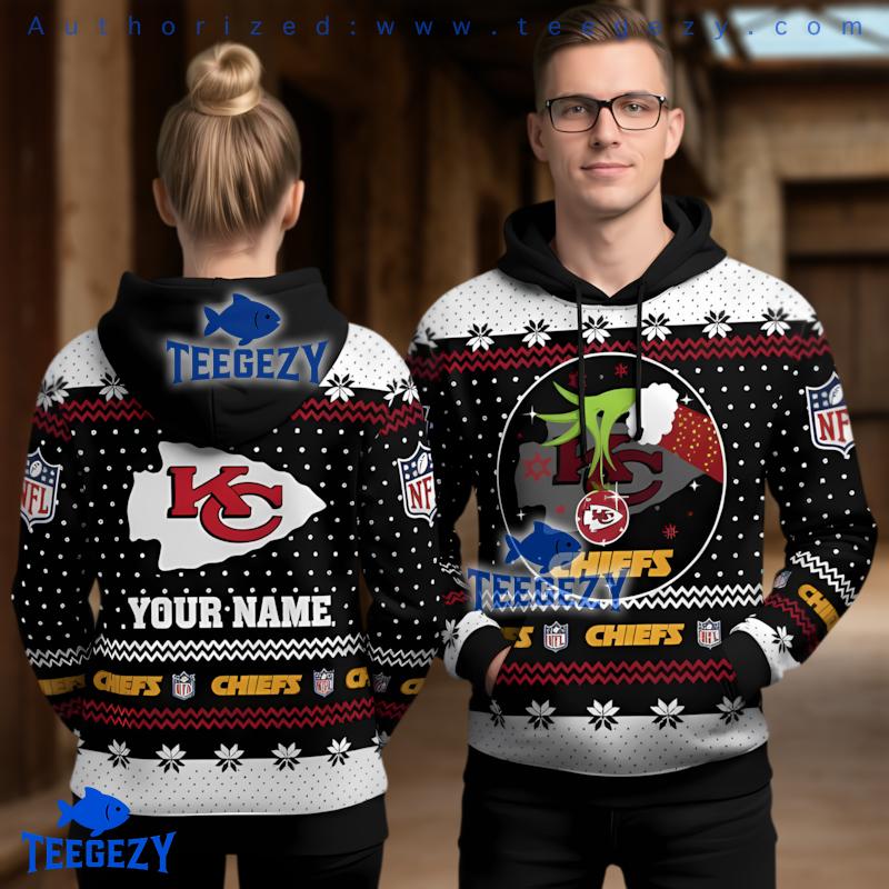Experience the festive spirit with the Personalized Kansas City Chiefs Grinch Holding Chiefs Logo Ugly Christmas 3D Hoodie. Perfect for any Kansas City Chiefs fan, this hoodie showcases a whimsical design that embraces the holiday cheer while proudly displaying your team loyalty. It’s a must-have for cheering at games or enjoying cozy days with loved ones.