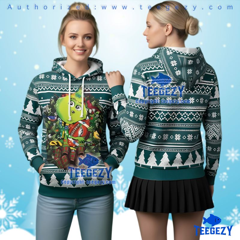 Don’t miss out on this unique piece that blends festive cheer with your team spirit. It’s the perfect gift for any Eagles fan and a delightful way to show your love for the game. Grab your Philadelphia Eagles Cute Grinch Ugly Christmas 3D Hoodie Xmas Gift today and make this holiday season unforgettable!