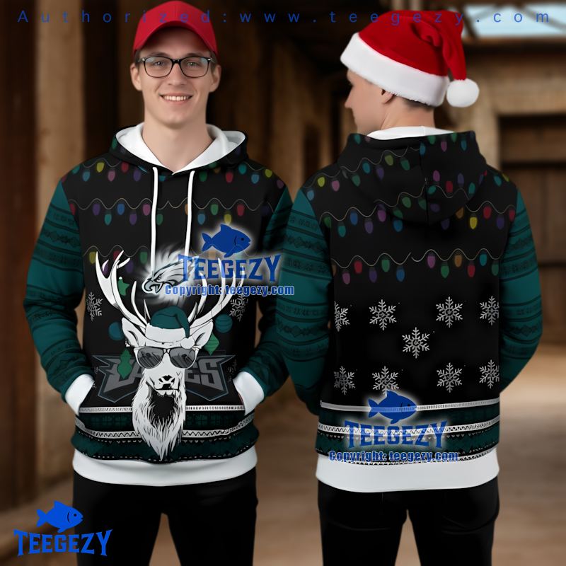 Inspired by a long tradition of holiday festivities, the funny reindeer Christmas hoodie connects fans with the joy of the season and the excitement of game day. As Eagles fans, we wear our pride not just during the season but in every aspect of our lives, making this design an homage to both the team and the fun of Christmas celebrations.