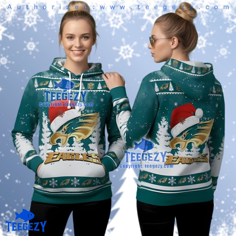 Experience the true spirit of the holidays with the Philadelphia Eagles Gold Logo Ugly Christmas 3D Hoodie NFL. This hoodie combines festive cheer with a love for football, making it the ultimate statement piece for any dedicated fan. Cheer on your team in style with a design that truly captures the essence of holiday fun and team spirit.