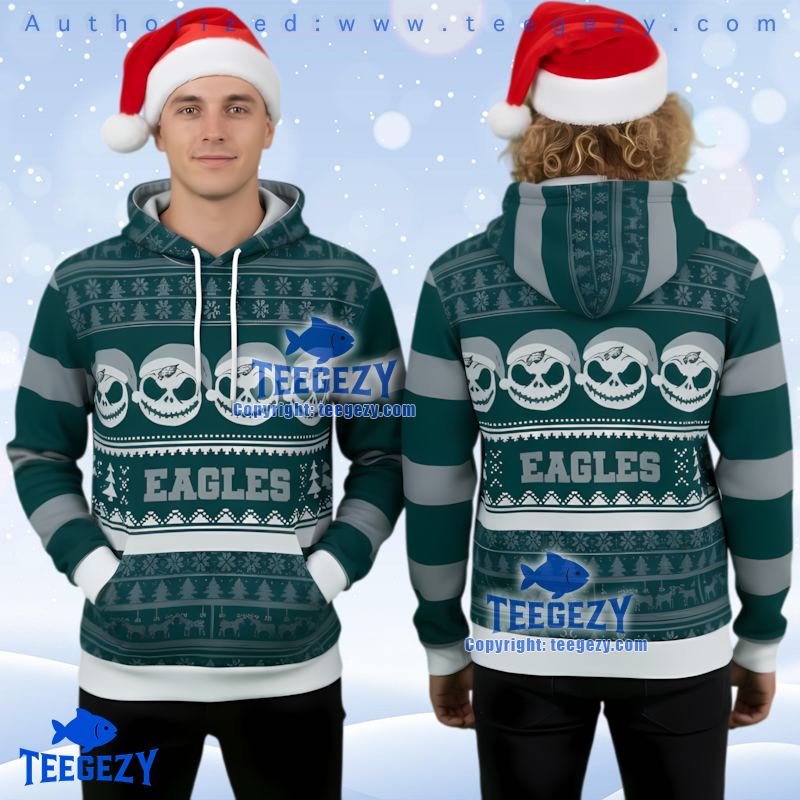 Product information "Philadelphia Eagles Jack Skellington Ugly Christmas 3D Hoodie Santa Hat"
