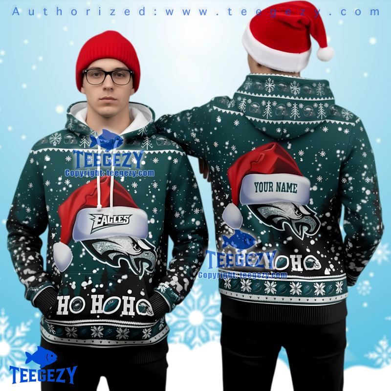 Get into the holiday spirit with the stylish Philadelphia Eagles Logo Santa Hat Ugly Christmas 3D Hoodie. This uniquely designed hoodie combines festive cheer with team pride, making it the perfect apparel for every fan who loves to celebrate both Christmas and football. Show your support with the Philadelphia Eagles hoodie and stand out at any holiday gathering!