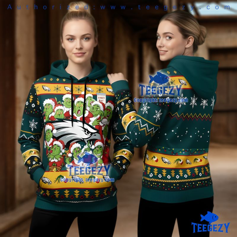 Step into the spirit of the season with the Philadelphia Eagles Many Grinch Ugly Christmas 3D Zip Hoodie. This uniquely designed hoodie blends festive cheer with your unwavering team loyalty, making it an ideal choice for any Eagles fan ready to celebrate the holidays in style.