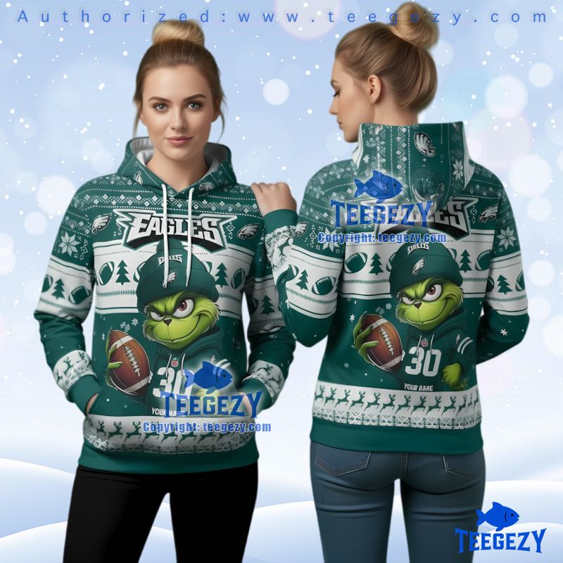 Are you ready to elevate your fan wardrobe? This hoodie is the ideal gift for someone special or a perfect addition to your collection. Don’t miss out on the chance to own the Philadelphia Eagles Personalized Grinch Ugly Christmas Hoodie; join the celebration today!