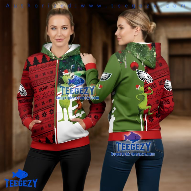 Don’t miss out on this must-have holiday apparel for Eagles fans. Whether you’re looking for a great gift or a standout piece for yourself, the Philadelphia Eagles Red Green Grinch Ugly Christmas 3D Printed Hoodie is essential for your winter collection. Celebrate your fandom this season; grab yours today!