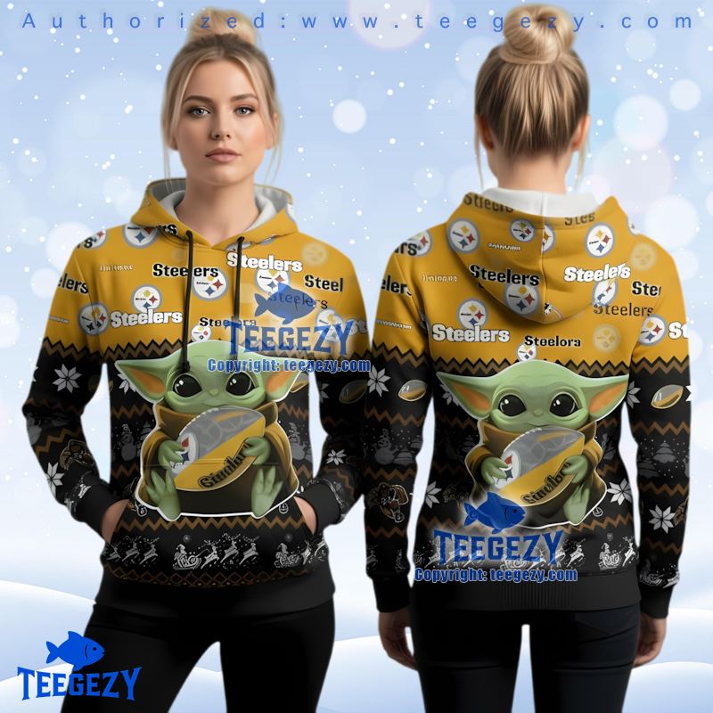 Product information "Pittsburgh Steelers Baby Yoda Grogu Football Ugly Christmas 3D Hoodie"