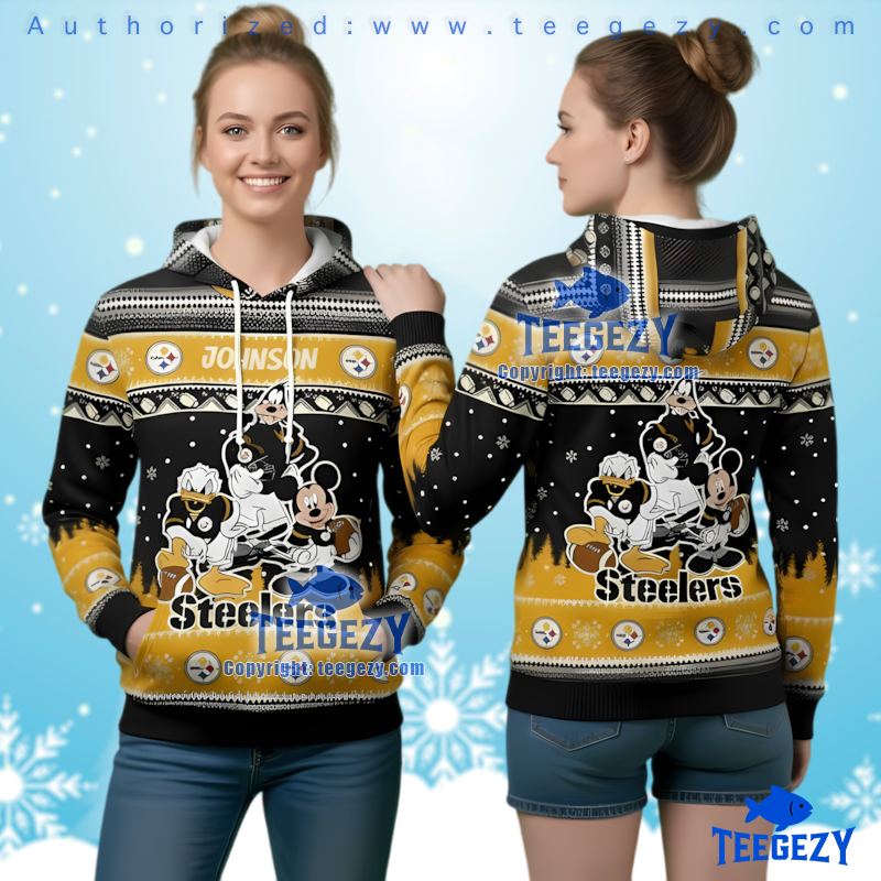 Product information "Pittsburgh Steelers Disney Mickey Donald Goofy Ugly Christmas 3D Hoodie"